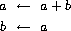 We can also formulate an iterative process for computing the Fibonacci numbers. The idea is to use a pair of integers a and b, initialized to Fib(1) = 1 and Fib(0) = 0, and to repeatedly apply the simultaneous transformations