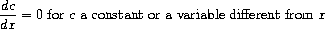 Observe that the latter two rules are recursive in nature. That is, to obtain the derivative of a sum we first find the derivatives of the terms and add them. Each of the terms may in turn be an expression that needs to be decomposed. Decomposing into smaller and smaller pieces will eventually produce pieces that are either constants or variables, whose derivatives will be either 0 or 1.